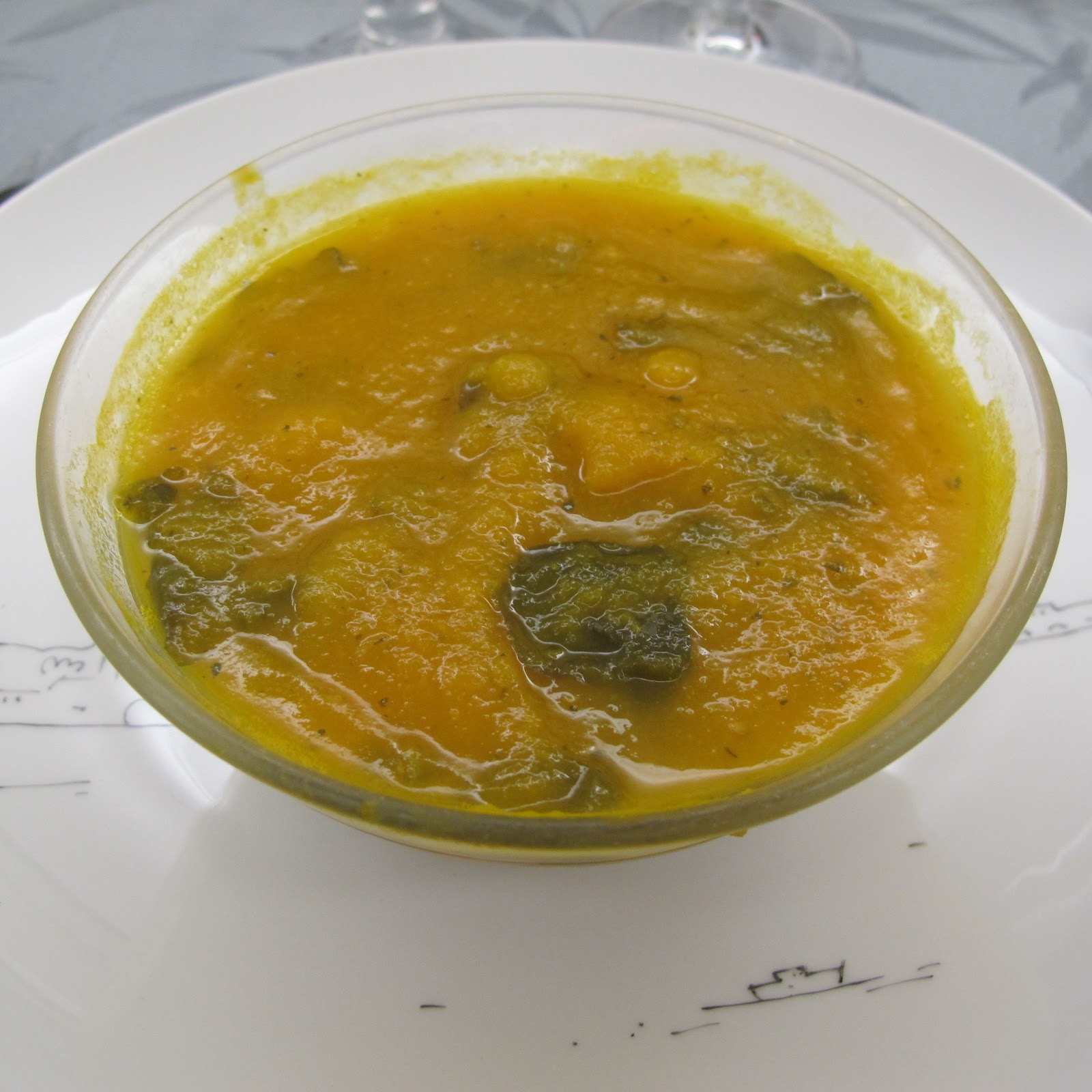 Levar ao lume até cozer. Quando os legumes estiverem bem cozidos, triturar com a varinha mágica.