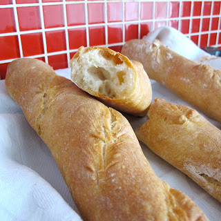 O clássico dos clássicos, a baguette. Já a tinha tentado fazer antes, mas de uma forma rápida, sem grandes frissons. Só que a baguette é um pão de frissons (não fora francês...) e portanto uma baguette que não segue todos os passos necessários não é uma verdadeira baguette, é apenas um pão branco com forma de baguette. Garanto-vos que não é a mesma coisa.
