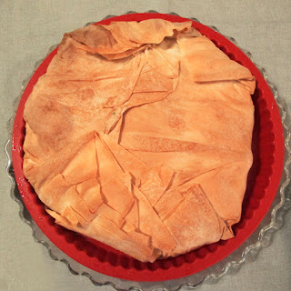 Em versão individual, faz seis empadas usando formas de tartelete. Com uma faca, dividem-se as folhas de massa em seis partes. Colocar duas partes numa forma, tendo o cuidado de deixar metade pendurada do lado de fora; pincelar com azeite, e repetir o processo para as restantes formas de tartelete. Voltar a colocar duas partes de massa na primeira forma, pincelar com azeite e repetir o processo até terminar a massa.
