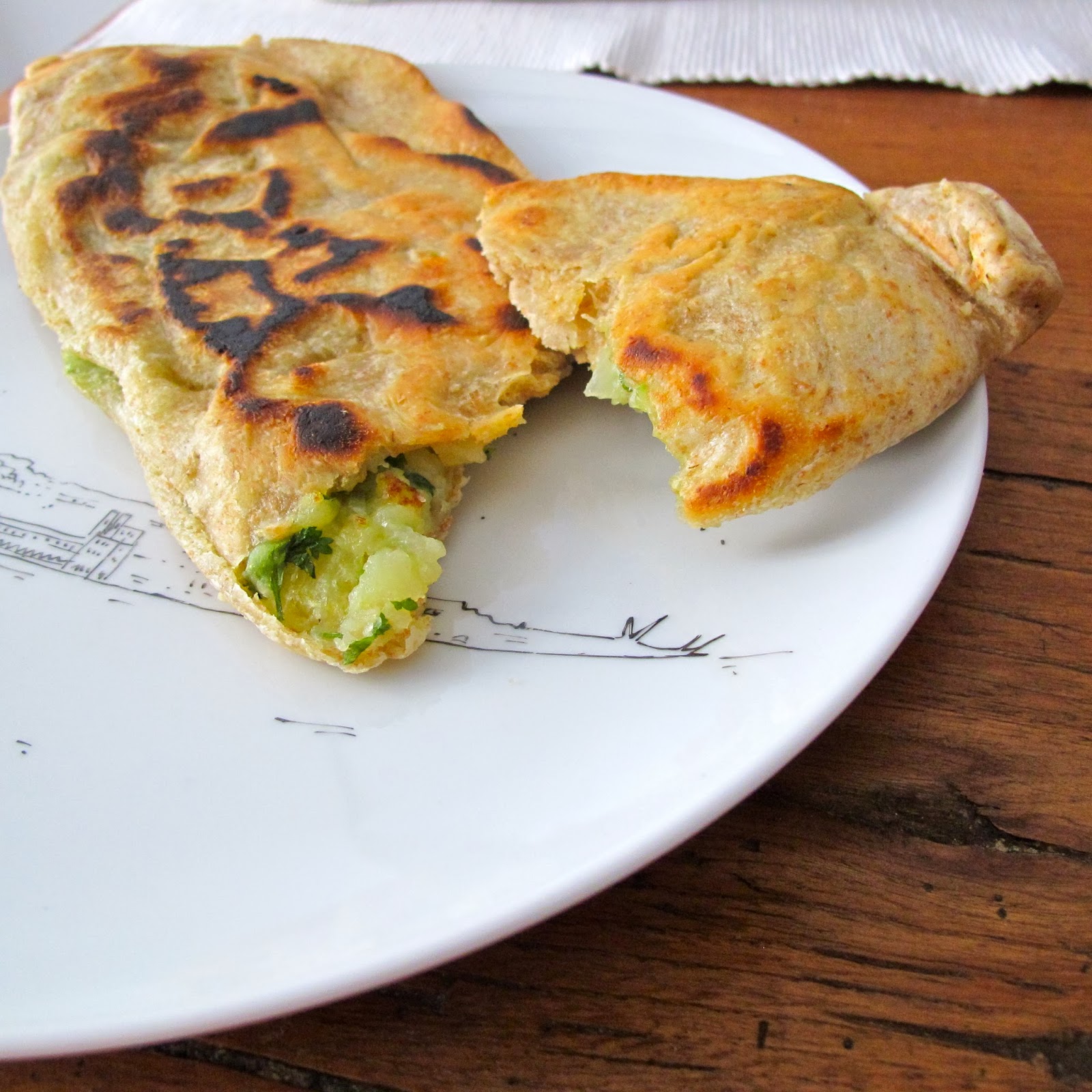 Uma receita afegã, os bolani são frequentes em festas e celebrações e ficam uma verdadeira delícia! Como a massa não leva fermento, não precisa de levedar, apenas repousa algum tempo para o glúten se formar, e o recheio não podia ser mais simples. A receita veio do Yesim Recipes.