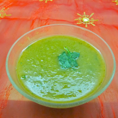 Dividir a mistura por dois pratos de sopa e polvilhar com hortelã fresca picada e regar com um pouco de sumo de limão.